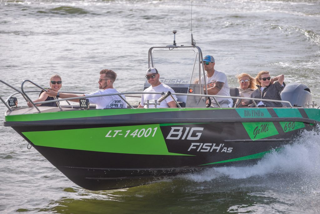Greitaeigis kateris BIG FISH’as – atviro denio kateris plaukia iš Klaipėdos, jame komfortiškai telpa 7 keleiviai. Tai puikus pasirinkimas norintiems pajausti greitą plaukimą skrodžiant bangas tiek Kuršių mariose, tiek išplaukiant į Baltijos jūrą.