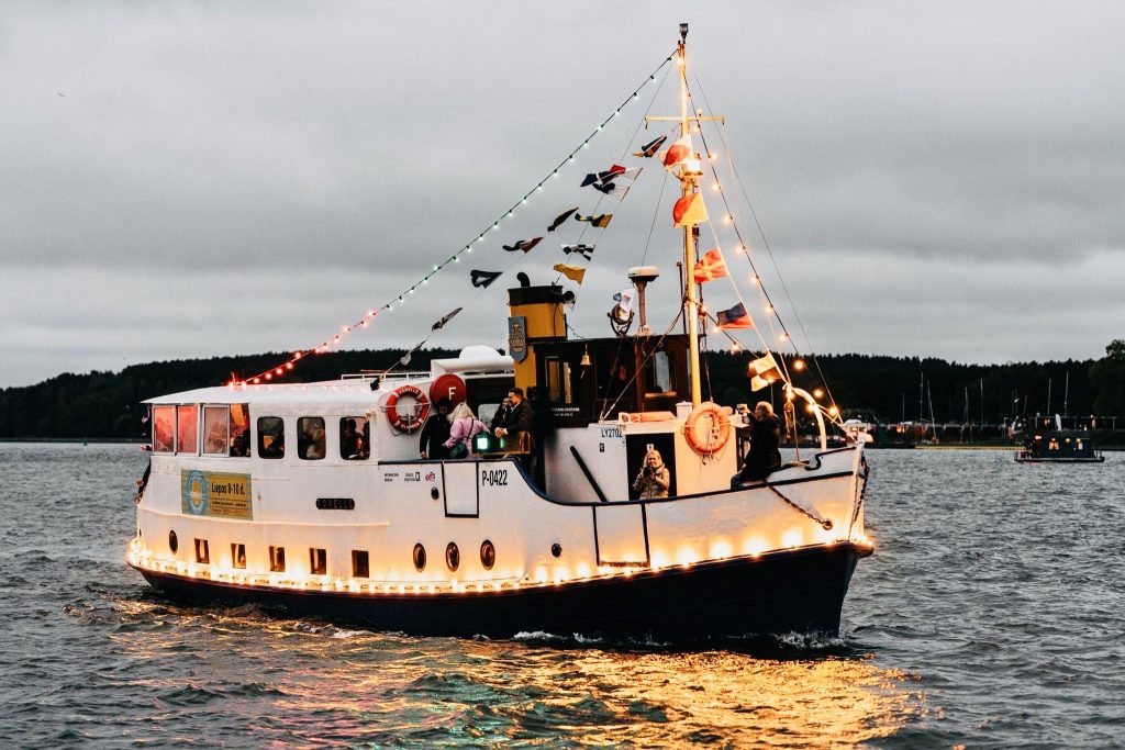Į laivą pateikiame užkandžių furšetą, karštus patiekalus. Pasirūpiname profesionalaus gido paslaugomis. Plaukimo metu svečius gali užimti vedėjo programa su temine viktorina, kazino rulete ar kita kolektyvą vienijančia veikla. Plaukiant kviečiame mėgautis gyvai atliekama įvairių žanrų muzika arba didžėjaus grojamu muzikiniu fonu. Pajudėjimui organizuojame aktyvias komandines pramogas krante.