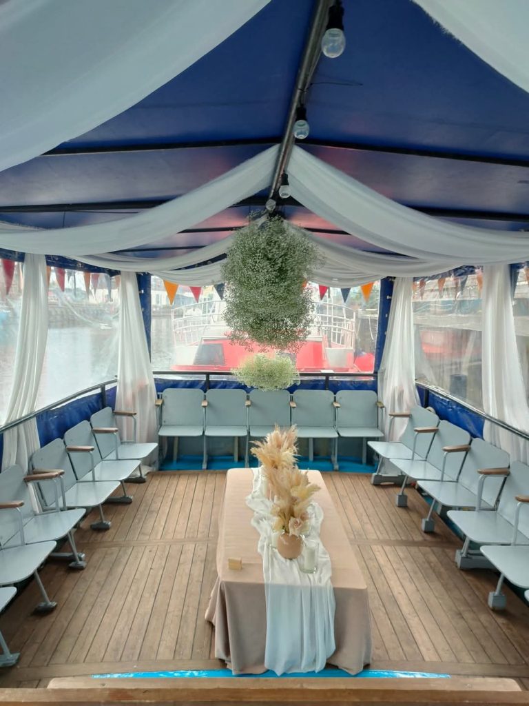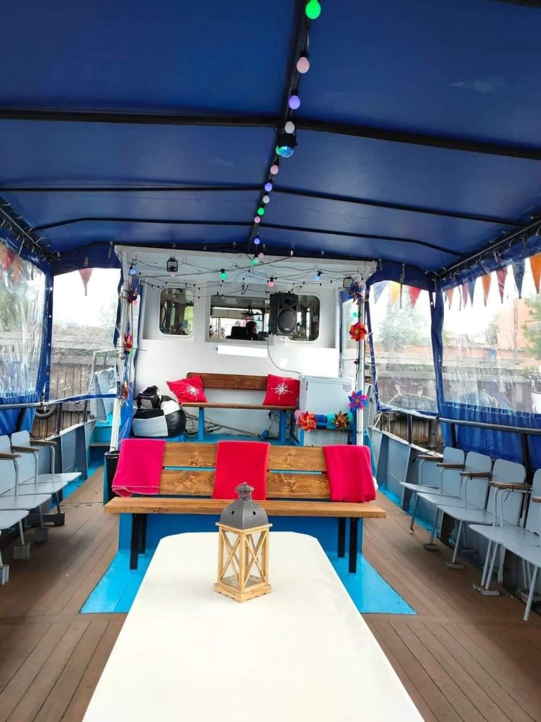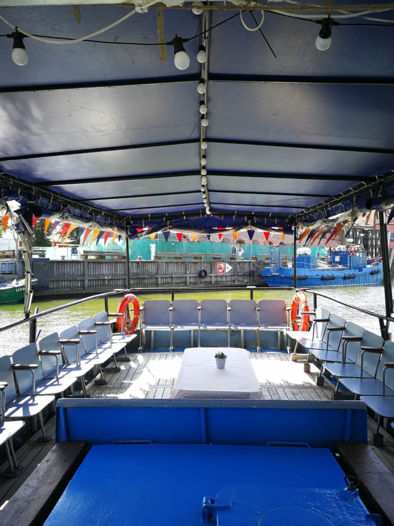 Laive siūlome užkandžių furšetą, sustojus kviečiame skanauti žuvies patiekalų Juodkrantėje. Pasirūpiname profesionalaus gido paslaugomis. Pajudėjimui organizuojame aktyvias komandines pramogas krantePlaukimo metu svečius galime užimti vedėjo programa su temine viktorina, kazino rulete ar kita kolektyvą vienijančia veikla.