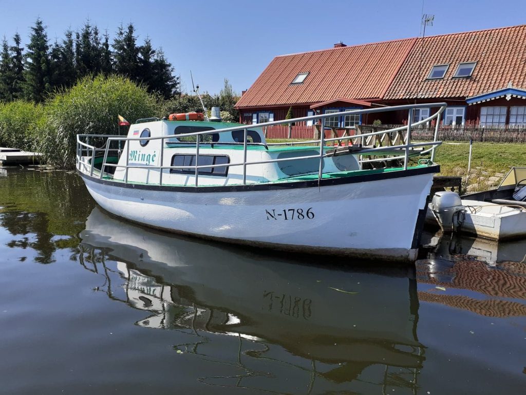 Laivas “Mingė” plukdo starkių, ešerių ir lydekų žvejybai Atmatoje, Nemune, Upaičio upėje ir Kuršių mariose.